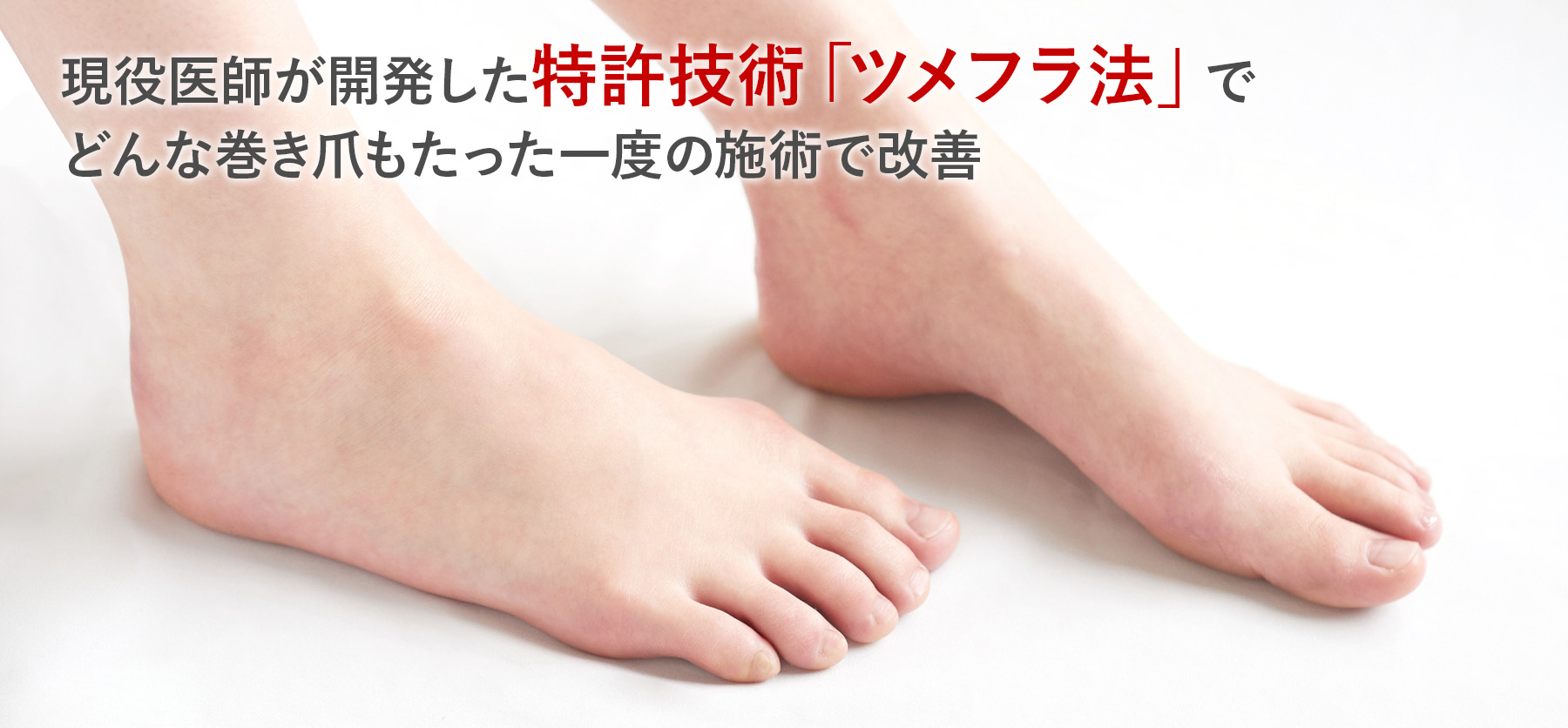 ツメフラ法はあらゆるタイプの巻き爪に対応でき、短期間で自然な爪の形に矯正することができる画期的な矯正法です。