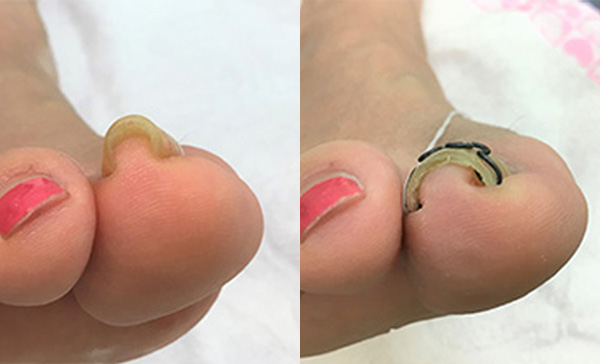 ストロー状の巻き爪が一度の施術でかなり開き、とても楽になりました。